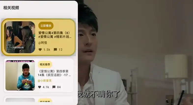 - 在首页,按确定键以显示/隐藏视频详情,长按确认键进入当前发布者主页,左右键调整视频进度,返回键回到导航栏。